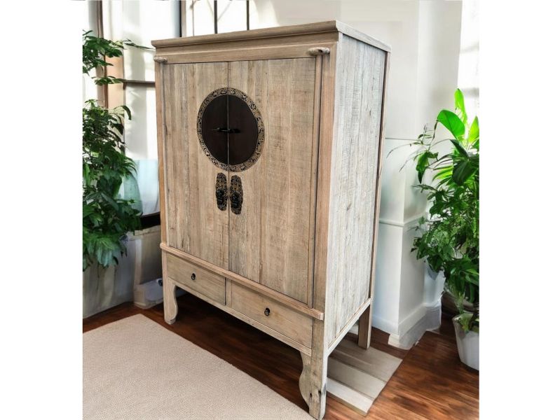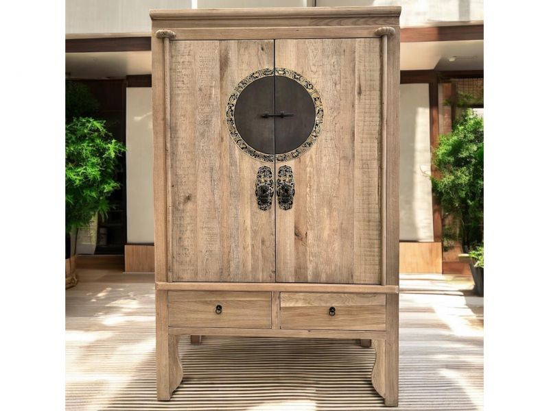 Dieser Hochzeitsschrank wurde nachhaltig hergestellt aus altem recyceltem Eichenholz. Ausgestattet mit aufwendig verzierten hochwertigen Messingbeschlägen verzaubert dieser besondere Schrank Ihr Zuhause durch ein warmes Ambiente mit asiatischem Charme. Trotz hochwertiger Verarbeitung und vieler Details wie zusätzlicher Schubfächer und Verzierungen an den Füßen bieten wir ein unschlagbares Preis-Leistungsverhältnis. Verfügbar ist dieser Artikel in vielen attraktiven Farbkombinationen.