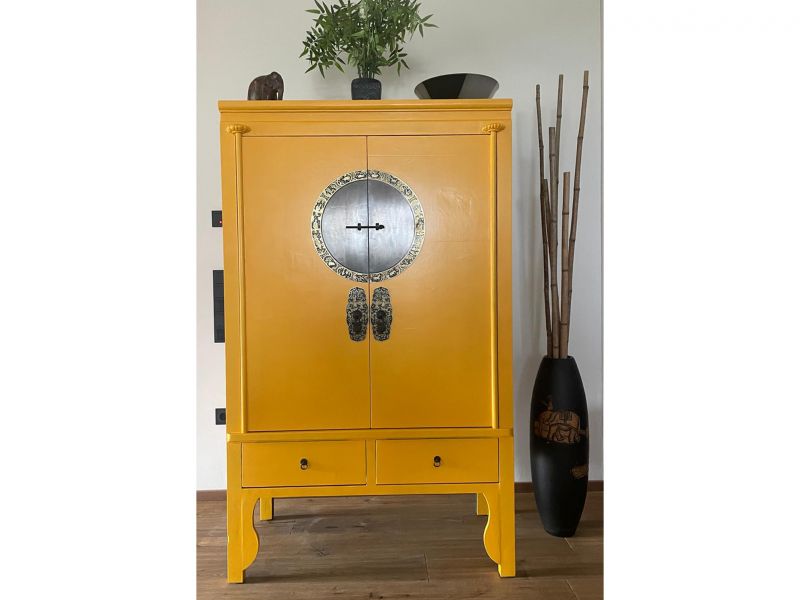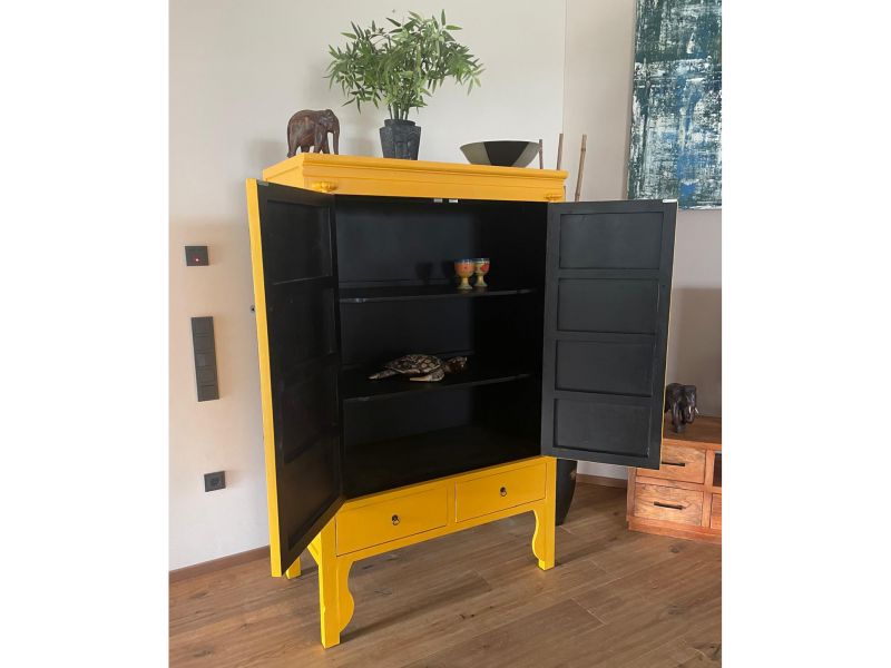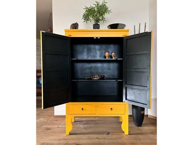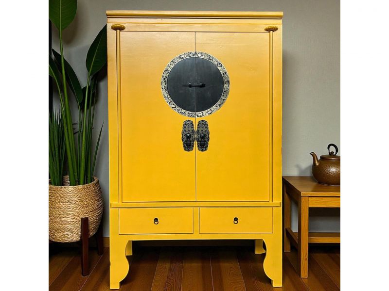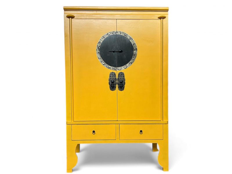 Dieser unverwechselbare Hochzeitsschrank in wunderschöner sonnengelber Farbe ist eine Reproduktion aus Pappelholz. Ausgestattet mit aufwendig verzierten hochwertigen Messingbeschlägen gehören derartige Schränke zur Grundausstattung jeden Angebots. Trotz hochwertiger Verarbeitung und vieler Details wie zusätzlicher Schubfächer und Verzierungen an den Füßen bieten wir ein unschlagbares Preis-Leistungsverhältnis. Verfügbar ist dieser Artikel in vielen attraktiven Farbkombinationen.