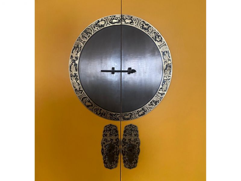 - aufwendige Messingbeschläge mit detaillierten Motiven die den chinesischen Tierkreiskalender zeigen