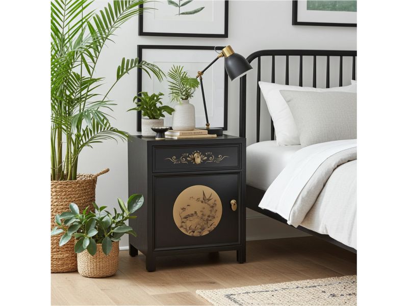 Schwarze asiatische Kommode unseres Designs "LesNoirs" original aus China gemacht in Handarbeit aus Pappelholz nach typisch traditioneller Handwerkskunst mit authentischen Motiven. Diese Kommode aus China eignet sich besonders gut als Nächtkästchen im Schlafzimmer und schafft dort ein warmes asiatisches Ambiente. Opium Outlet verkauft keine Massenware sondern besondere authentische Einzelstücke mit Charme und Charakter. Dabei stehen für uns hohe Qualitätsstandards bei gleichzeitig gutem Preis/Leistungsverhältnis im Vordergrund.