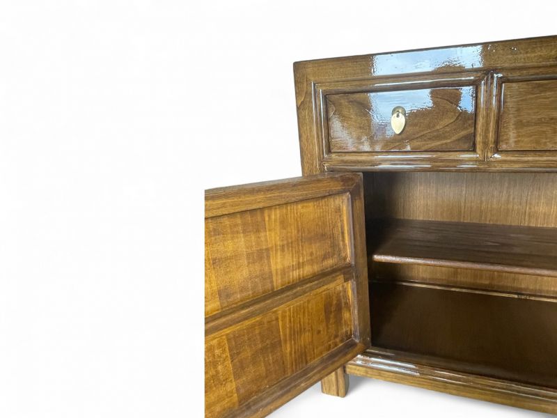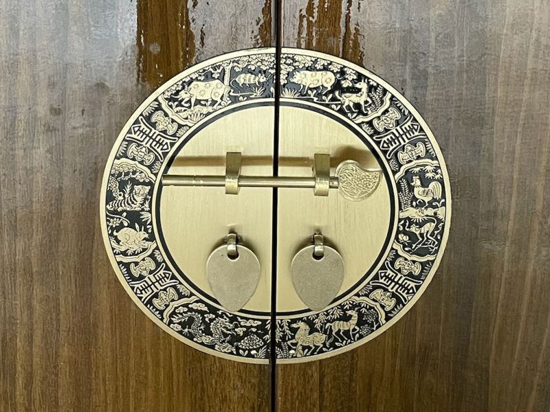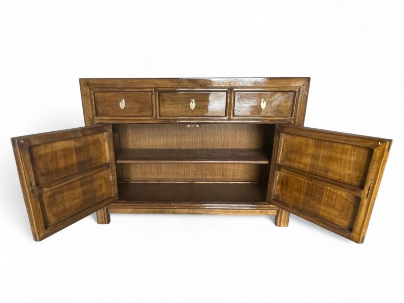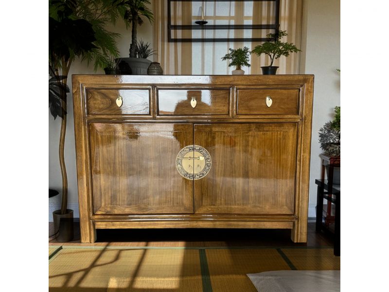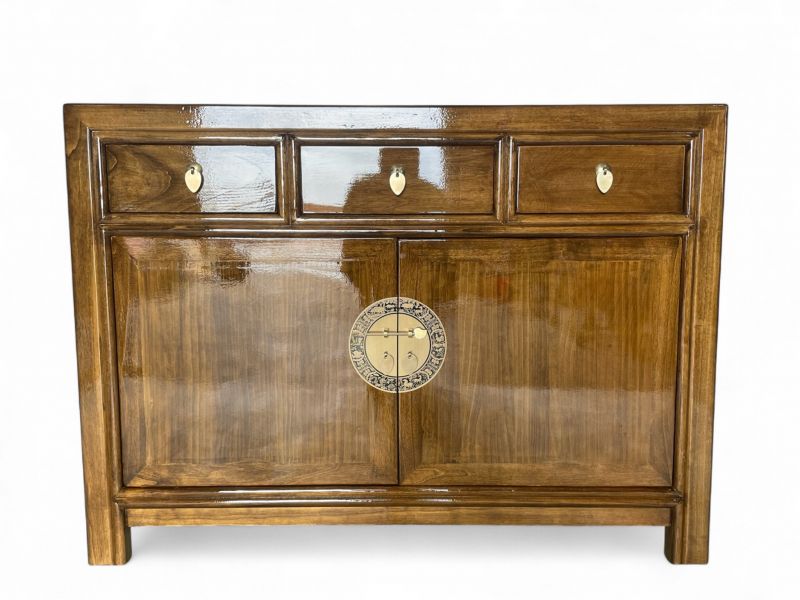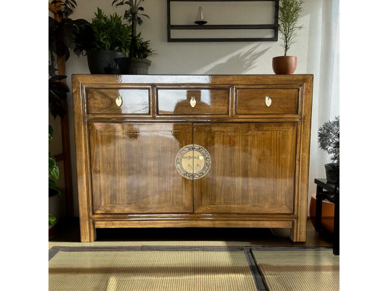 Diese kastanienbraune chinesische Kommode ist ausgestattet mit 3 Schubfächern und großem Stauraum mit 2 Türen der innen mit einem herausnehmbaren Regalboden unterteilt ist. Das Highlight dieses unvergleichlichen Möbelstücks aus Asien sind die aufwendigen runden Messingbeschläge die den chinesischen Tierkreiskalender originalgetreu abbilden. Kunstvoll handgefertigt von fachlich erfahrenen Schreinern versprüht dieses Asia Sideboard im Shabby- oder Vintage Stil einen einzigartigen orientalischen Charme. Alle Möbelstücke, Kommoden, Sideboards, Kästchen und Schränkchen von Opium Outlet aus China müssen sehr hohen Qualitätsstandards entsprechen und werden von uns persönlich vor Ort vor der Lieferung begutachtet und kontrolliert.