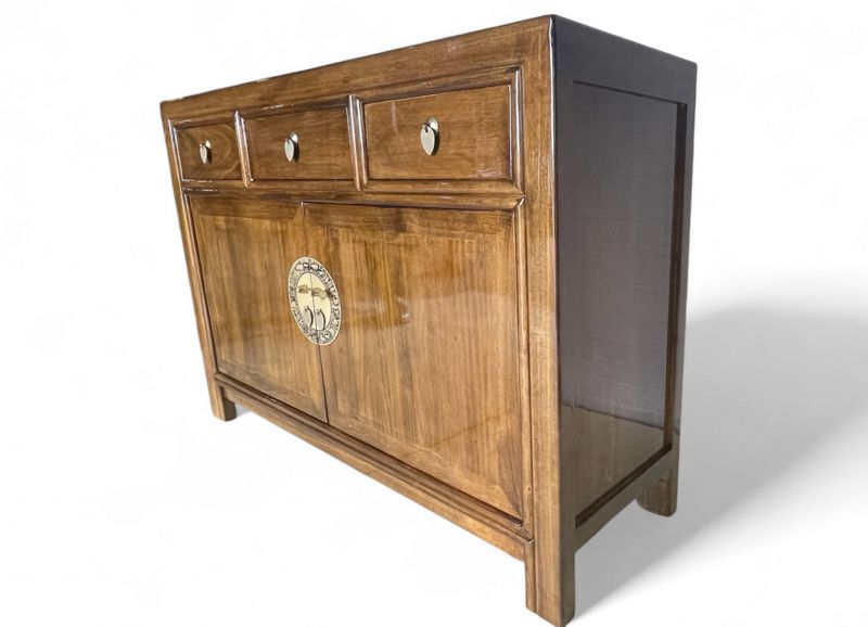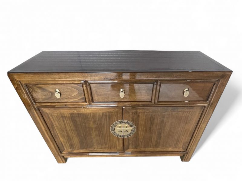 - asiatisches Sideboard aus Holz mit landestypischen aufwendigen runden Messingbeschlägen.