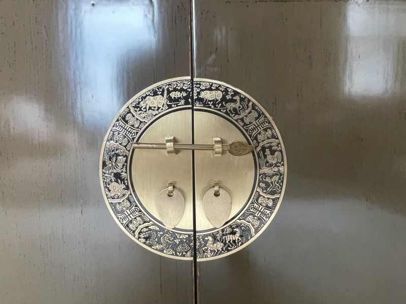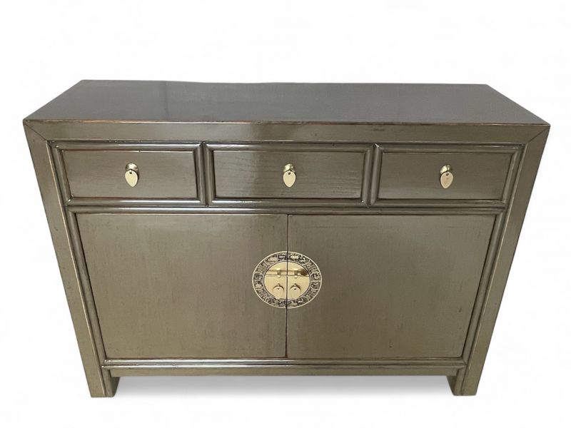 - asiatisches Sideboard aus Holz mit landestypischen aufwendigen runden Messingbeschlägen.