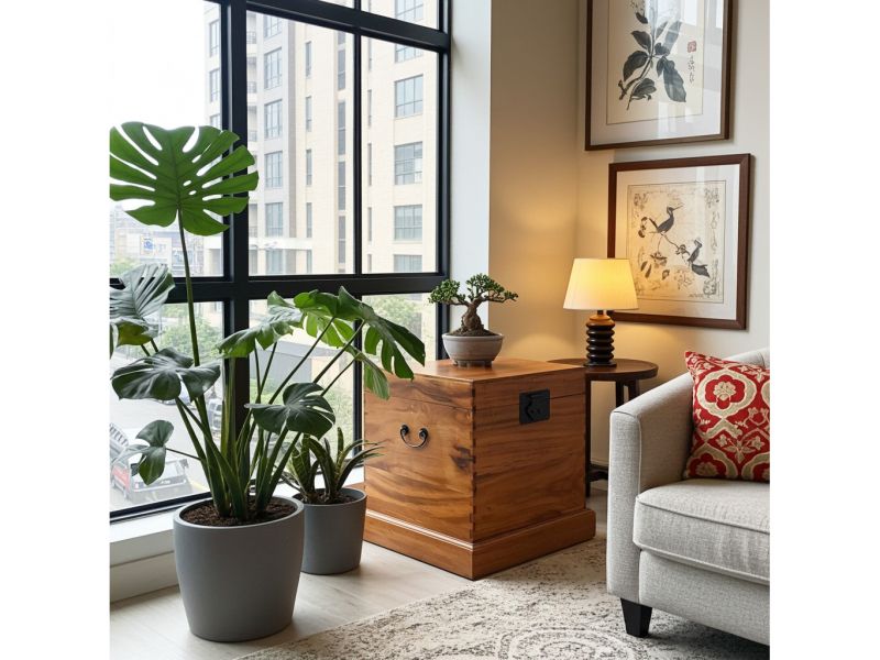 - Holztruhe aus China mit Sockel und Deckel