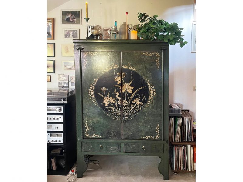 Chinesischer Hochzeitsschrank dunkelgrün