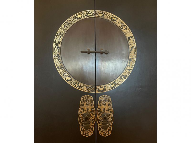 Der Klassiker! Chinesischer Hochzeitsschrank in Farbe schwarz aus Pappelholz. Dieser Schrank aus China ist ausgestattet mit hochwertigen Messingbeschlägen die die chinesischen Tierkreiszeichen abbilden. Opium Outlet ist spezialisiert auf chinesische Hochzeitsschränke und bietet trotz hochwertiger Verarbeitung und vieler Details wie zusätzlicher Schubfächer und Verzierungen an den Füßen ein unschlagbares Preis-Leistungsverhältnis.