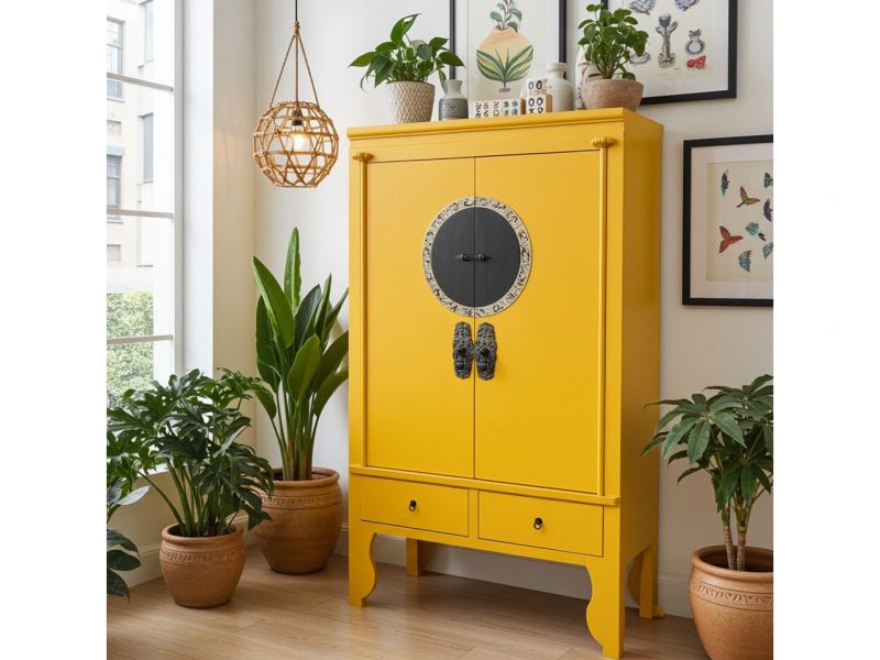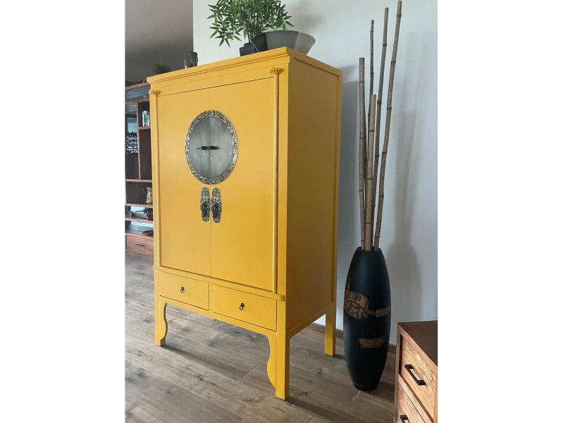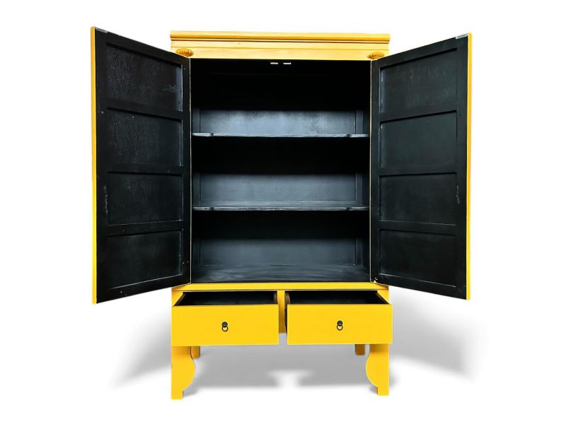 Dieser unverwechselbare Hochzeitsschrank in wunderschöner sonnengelber Farbe ist eine Reproduktion aus Pappelholz. Ausgestattet mit aufwendig verzierten hochwertigen Messingbeschlägen gehören derartige Schränke zur Grundausstattung jeden Angebots. Trotz hochwertiger Verarbeitung und vieler Details wie zusätzlicher Schubfächer und Verzierungen an den Füßen bieten wir ein unschlagbares Preis-Leistungsverhältnis. Verfügbar ist dieser Artikel in vielen attraktiven Farbkombinationen.