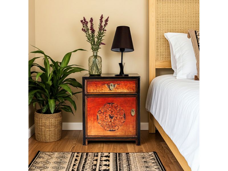 "New looks old" im angesagten Shabby-Chic-Stil ! Kleine chinesische Kommode oder Kästchen (perfekt auch als Nachtkästchen) im Kolonialstil original aus China gemacht in Handarbeit aus Kiefernholz nach typisch traditioneller Handwerkskunst in unserem beliebten Design "Fire". Ein authentisches Möbelstück aus China mit Charme das jeden Raum aufwertet.