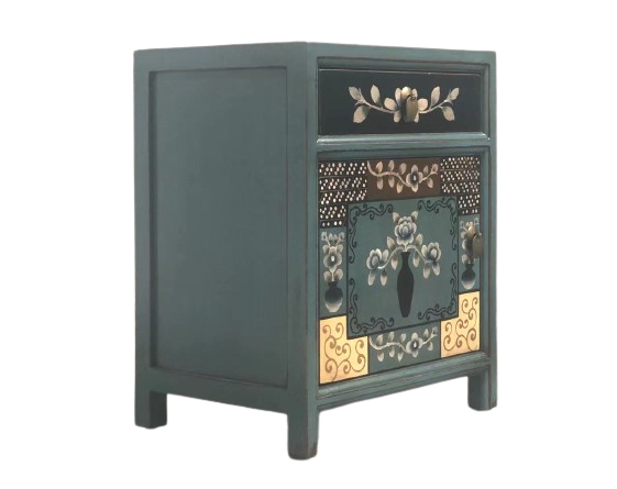 Diese kleine Kommode aus China wurde von chinesischen Handwerkern mit der Erfahrung vieler Generationen mit Liebe zum Detail in Handarbeit gefertigt. Ein chinesisches Nachtschränkchen oder Kästchen das sich besonders im Zweierpack neben dem Bett gut macht. Die Oberflächen und Kanten wurden sachkundig bearbeitet und auf einen dezenten Vintage / Shabby Stil ausgerichtet.