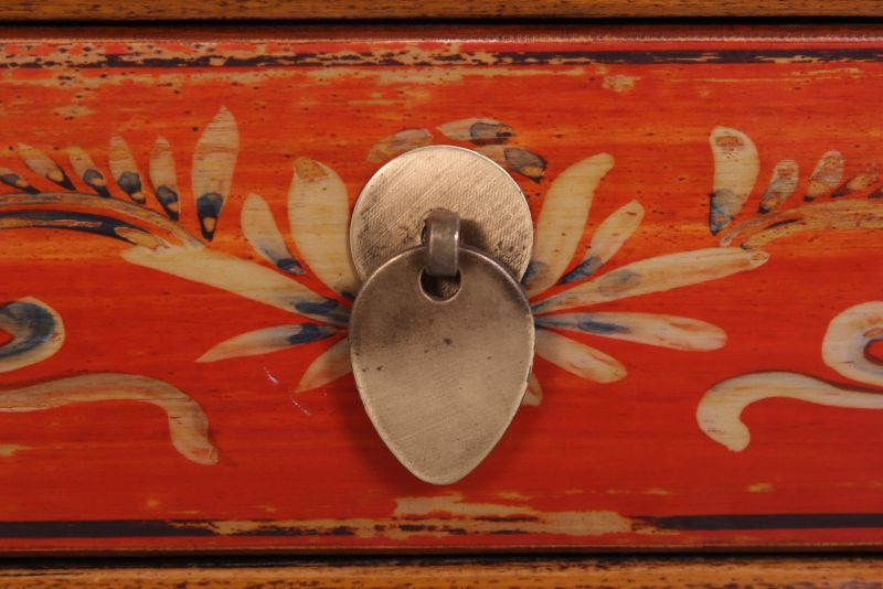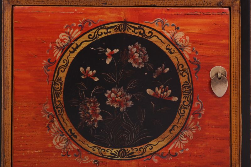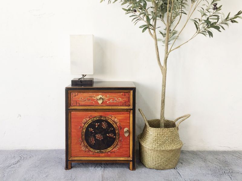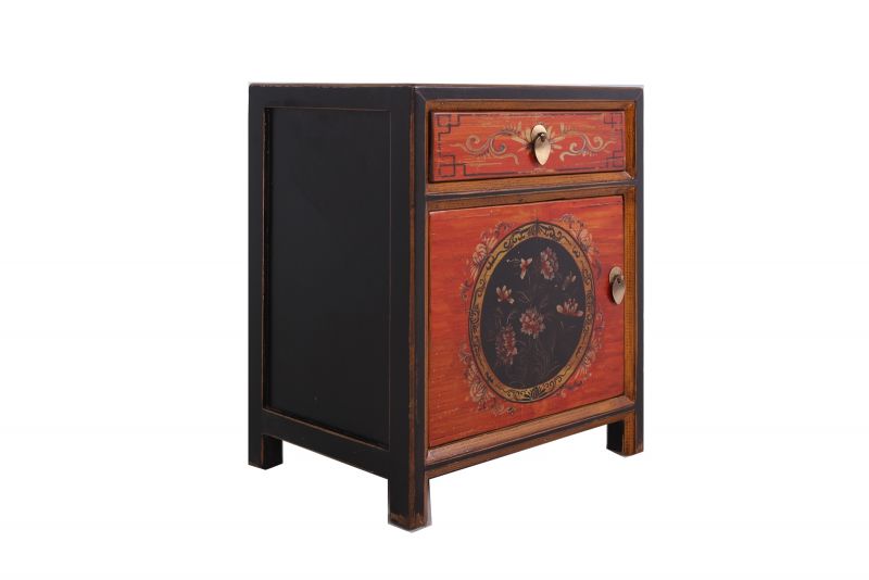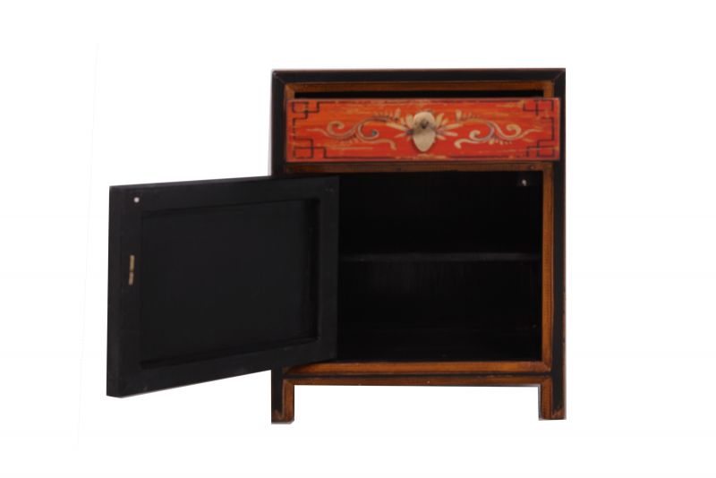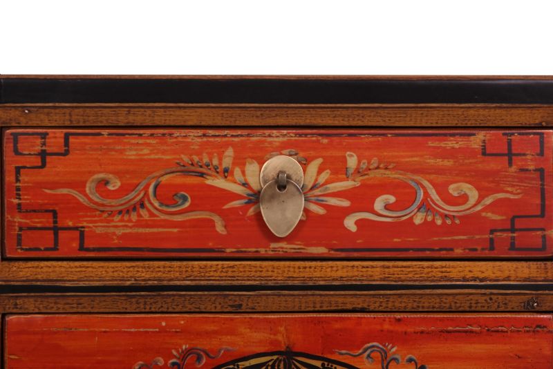 Kleine chinesische Kommode in rot / orange mit schwarzem Rahmen im Kolonialstil original aus China gemacht in Handarbeit aus Pappelholz nach typisch traditioneller Handwerkskunst mit unaufdringlichen Motiven. Diese Kommode aus China passt auch sehr gut als Nächtkästchen ins Schlafzimmer und schafft dort ein warmes asiatisches Ambiente. Opium Outlet verkauft keine Massenware sondern besondere authentische Einzelstücke mit Charme und Charakter. Dabei stehen für uns hohe Qualitätsstandards bei gleichzeitig gutem Preis/Leistungsverhältnis im Vordergrund.