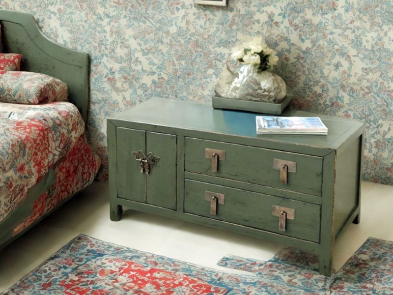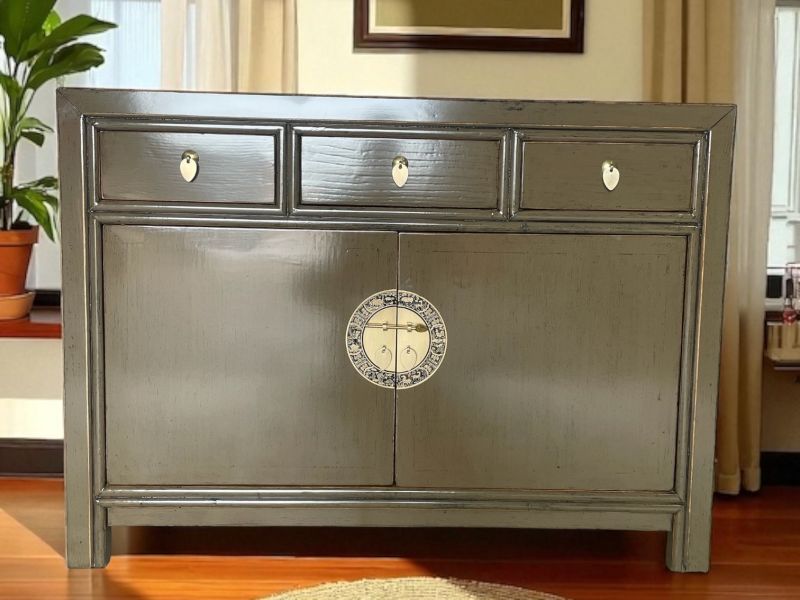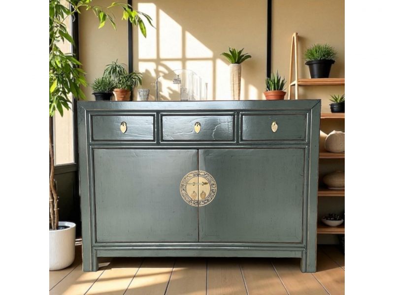 Asiatisches Sideboard im Vintage-Stil oliv-grau