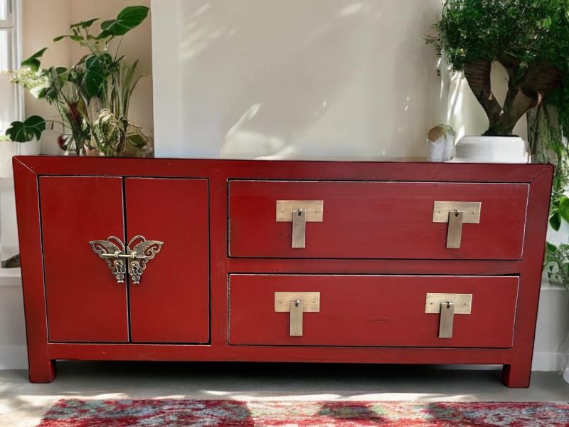 Asia Hoch-Kommode "RedMagic" rot/schwarz