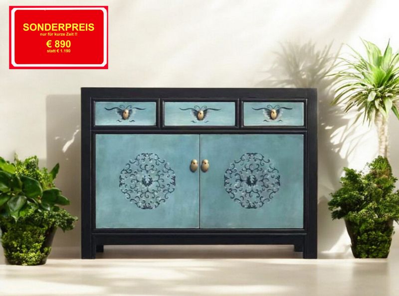 - Asia Sideboard antik im Shabby-Vintage-Stil gemacht in Handarbeit aus Kiefernholz nach typisch traditioneller Handwerkskunst. Tolle farbenfrohe Motive die jedem Raum ein fröhlich optimistisches Ambiente verleihen.