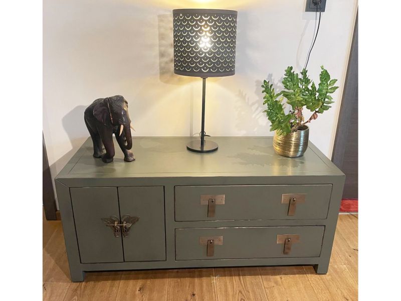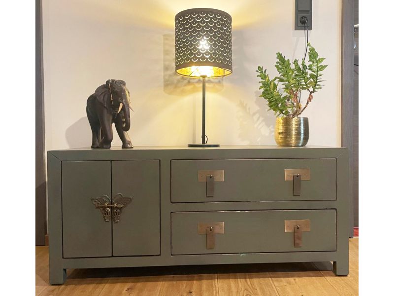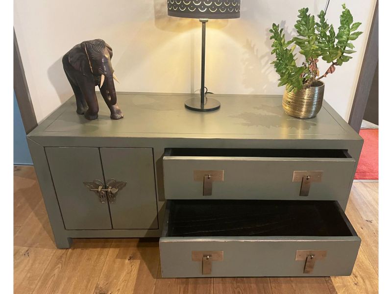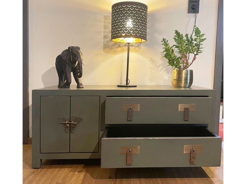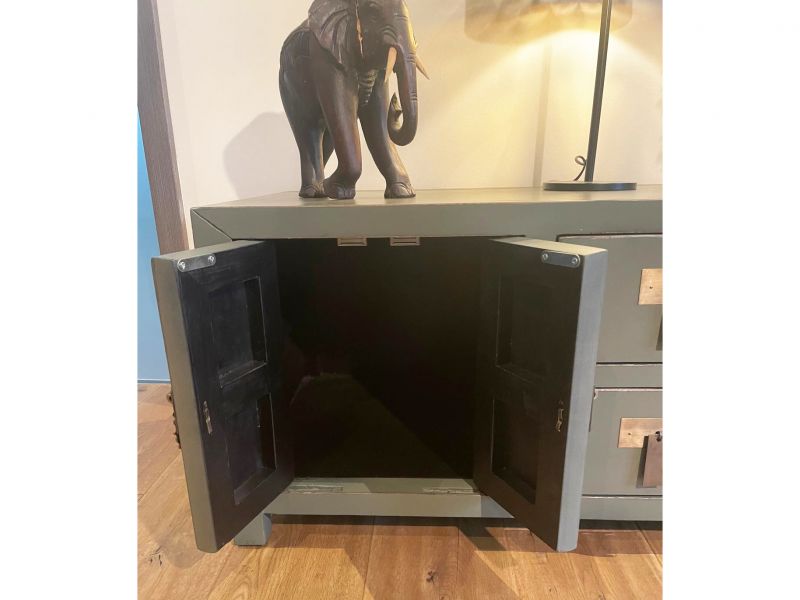 Diese chinesiche Kommode bzw. Sideboard ist eine Reproduktion aus Pappelholz mit einer Rückwand aus Sperrholz. Die Beschläge sind aufwendig verziert und in wunderschöner Schmetterlingsform gehalten. Die ganz besondere Alternative für eine Kommode, ein Sideboard, eine Anrichte oder auch speziell als TV-Kästchen mit vielen Schubfächern und Stauraum. Wir liefern Ihnen diese chinesische Kommode komplett montiert in einem Stück also kein Aufwand für Aufbau/Montage.