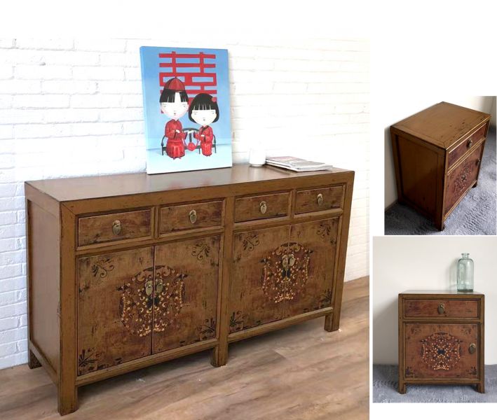 - diese Kombination besteht aus einer chinesischen Kommode mit 2 passenden Nachtkästchen