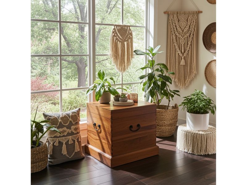 Authentische koloniale Optik aus unverwechselbarem Kampferholz mit Echtholz-Maserung und Sockel.